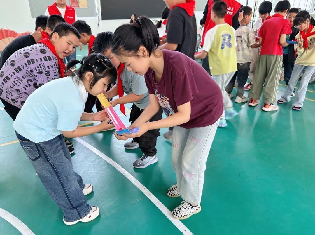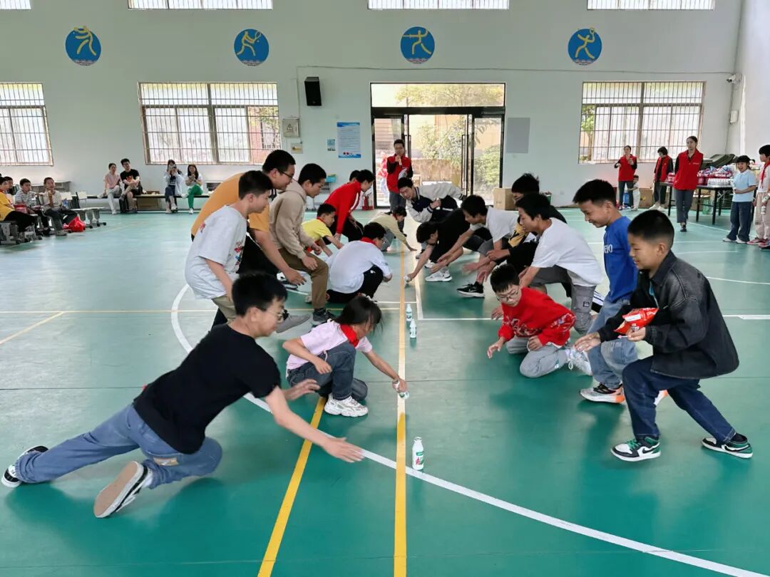 活动现场,志愿者们与孩子们热情互动,精心组织了“东南西北跑”、“听口令抢零食”、“小球传递赛”等一系列趣味游戏。孩子们在游戏中尽情欢笑、肆意奔跑,现场气氛热烈,欢声笑语回荡。一张张幸福的笑脸,仿佛将整个校园化作了欢乐的海洋。