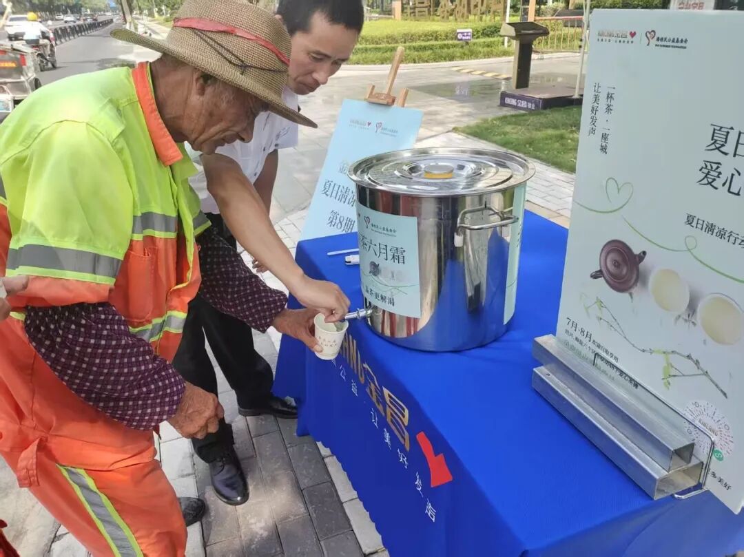 此外,还限时限量推出了干菜、平水绿茶等极具绍兴特色的消暑凉茶。每一款凉茶,都像是一位无声的使者,承载着绍兴这座城市悠久的历史韵味与深厚的人文情怀,让人们在品尝清凉的同时,也能深切感受到浓浓的地方特色,领略到这座城市的独特魅力。而且,为了让这份清凉更加“触手可及”,各个爱心茶摊还贴心准备了公益清凉扇。轻摇间清风徐来,不仅消暑,更将活动的爱心与声势传递得更远。