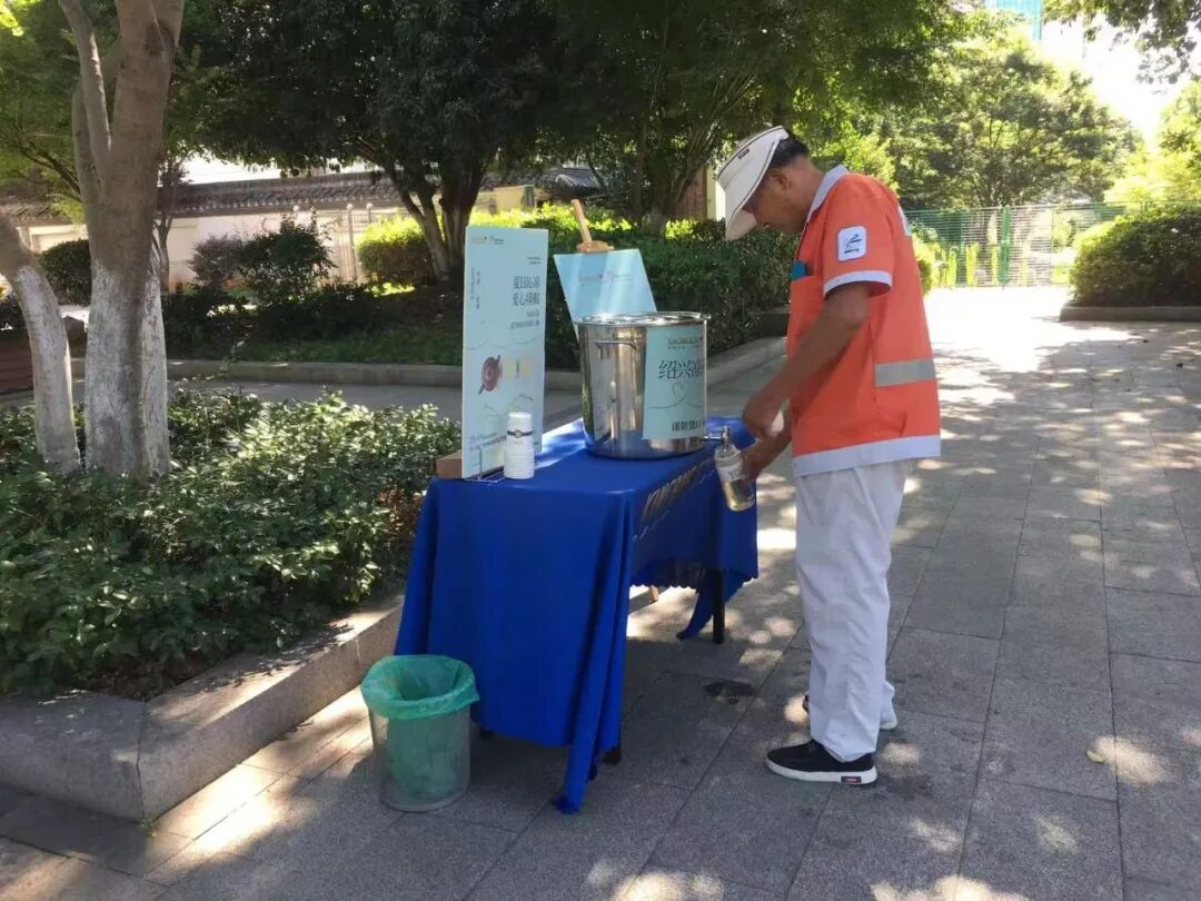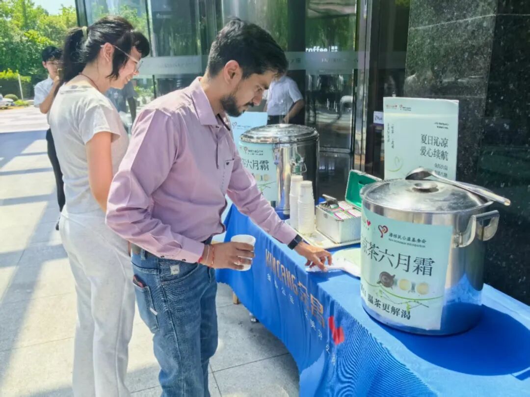“小暑过,每日热三分”,这句古老的民谚,恰如其分地描绘出小暑节气的特点。此时正值初伏前后,空气仿佛被一只无形的手轻轻揉捏,湿度逐渐加大,天气也悄然从干热转变为闷热,宛如开启了一场“桑拿模式”的盛大派对,将整个世界都笼罩在一片氤氲的热气之中。在这热情似火的时节里,金昌公益、潘栋民公益基金会带着满满的关怀与温情,于柯桥、越城、诸暨、嵊州、新昌、海盐等六区县街头巷尾精心布置了48个凉茶摊位。
