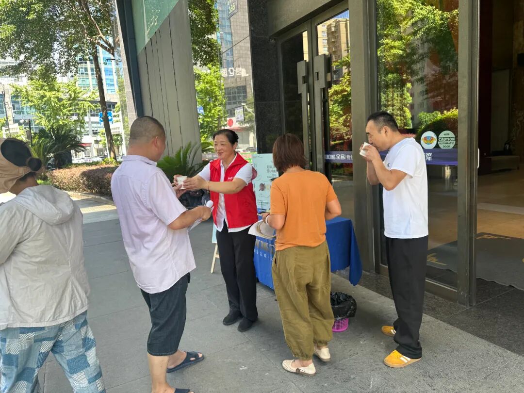 为让户外工作者更舒适度夏,每个爱心茶摊都配备了定制清凉扇。畅饮凉茶时,轻摇扇子,微风拂面,带走暑热,增添惬意。这小小的扇子,不仅是一件实用的纳凉工具,更承载着满满的关怀。