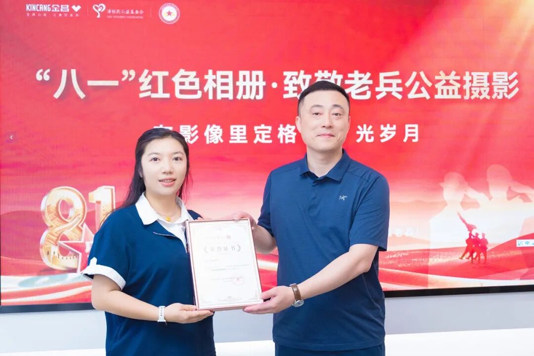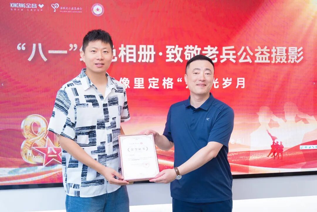 在“八一”建军节来临之际,金昌公益、潘栋民公益基金会联合柯桥区退役军人事务局,于近日共同举办“‘八一’红色相册·致敬老兵公益摄影”活动,活动通过“影像记录+精神传承”的创新艺术形式,致敬退役银龄军人,用光影镌刻军旅荣光,以镜头传递家国情怀。