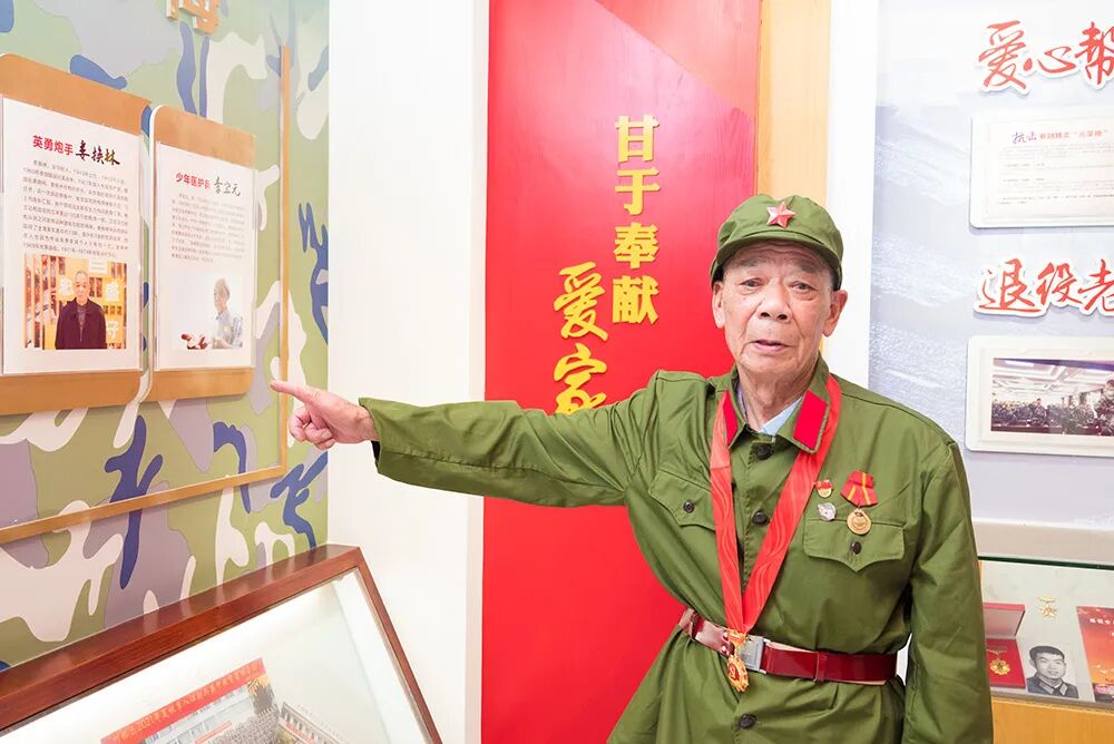 “雄赳赳,气昂昂,跨过鸭绿江……”在安昌街道军人之家,8岁的学生志愿者李洛妤凑到百岁抗美援朝老兵朱阿大身旁,认真问起那段峥嵘岁月,朱阿大谈起抗美援朝经历,还用沙哑却无比坚毅的声音唱起军歌,历史的重量与未来的光芒在对话中交织,一张珍贵的合影由此诞生。