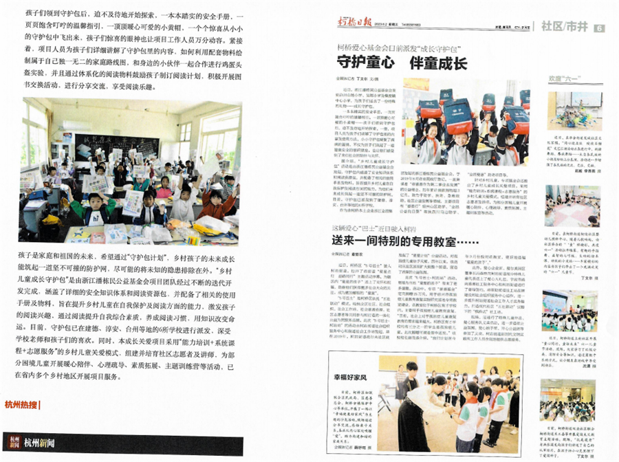 项目采用“能力培训+系统课程+志愿服务”的乡村儿童成长关爱助学模式,核心目标为满足乡村儿童素养教育需求,培育社区志愿者及讲师团队,帮助乡村困境儿童提升自我保护能力。项目服务范围涉及浙江省衢州市、淳安县、金华市、舟山市、丽水市、台州市等6处乡村学校,开展形式创新,如设计制作“成长守护包”,定制《安全知识科普宣传手册》,组织校园安全知识趣味课堂,策划安全教育训练营活动。项目专项组建并培育志愿者讲师近100人,共同关注乡村儿童的安全教育、成长教育事业。